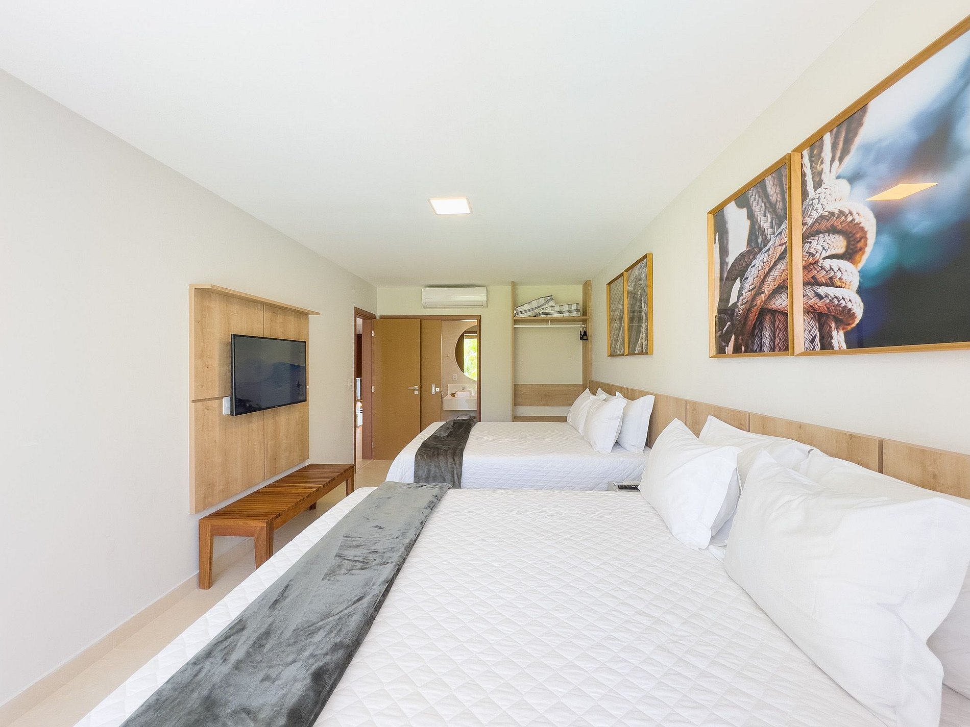 Jede Suite verfügt über eine Split-Klimaanlage, Smart TV und Kleiderschränke, um ein umfassendes und elegantes Unterkunftserlebnis zu bieten.