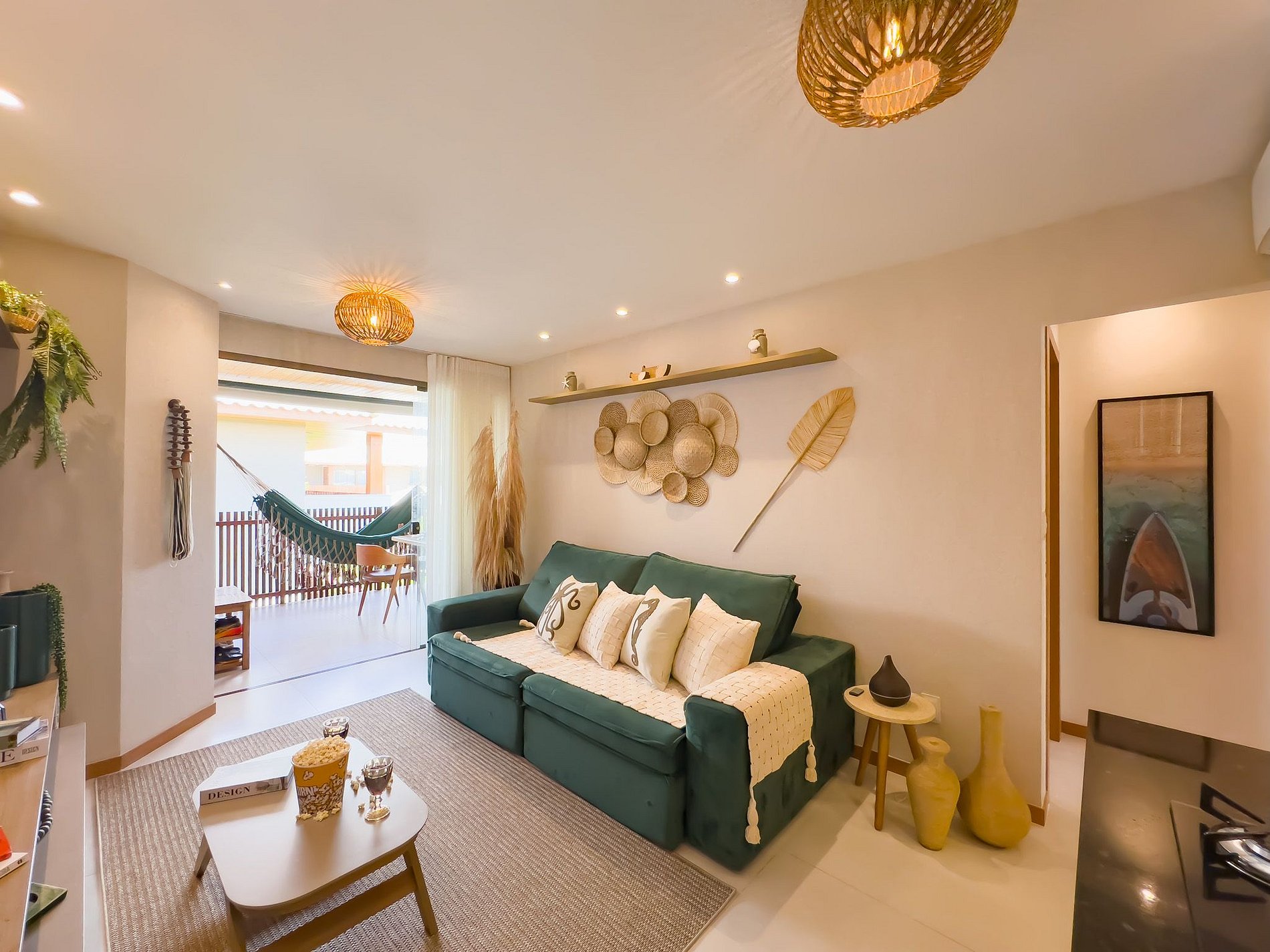• Außenbereich mit bequemer Möblierung und Hängematte zum Entspannen.
