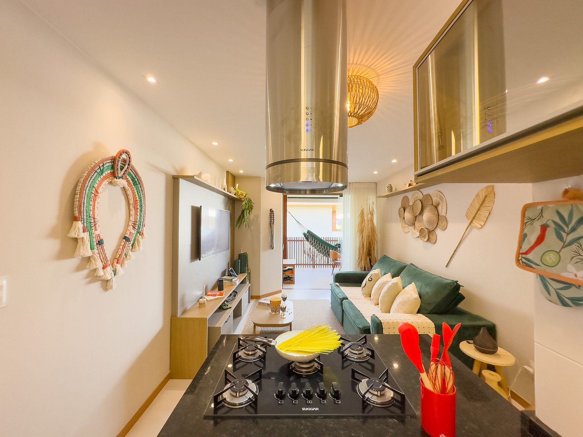 • Ideale Ausstattung: Voll ausgestattete Küche mit Herd, Dunstabzugshaube, Backofen, Wasserfilter, Mikrowelle und Utensilien, außerdem Waschmaschine und Trockner für deine Bequemlichkeit.