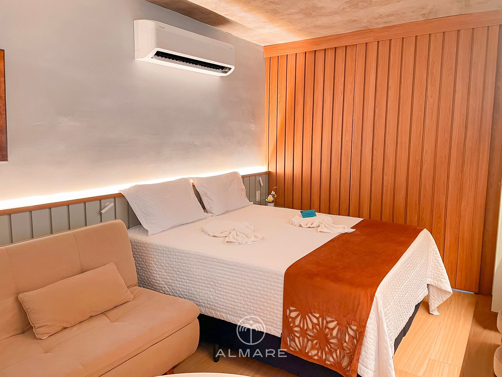 O flat possui um design moderno e funcional, com acabamentos de alta qualidade e uma atmosfera acolhedora. Com uma área de 24m², cada centímetro deste espaço foi cuidadosamente planejado para oferecer o máximo de conforto e conveniência.