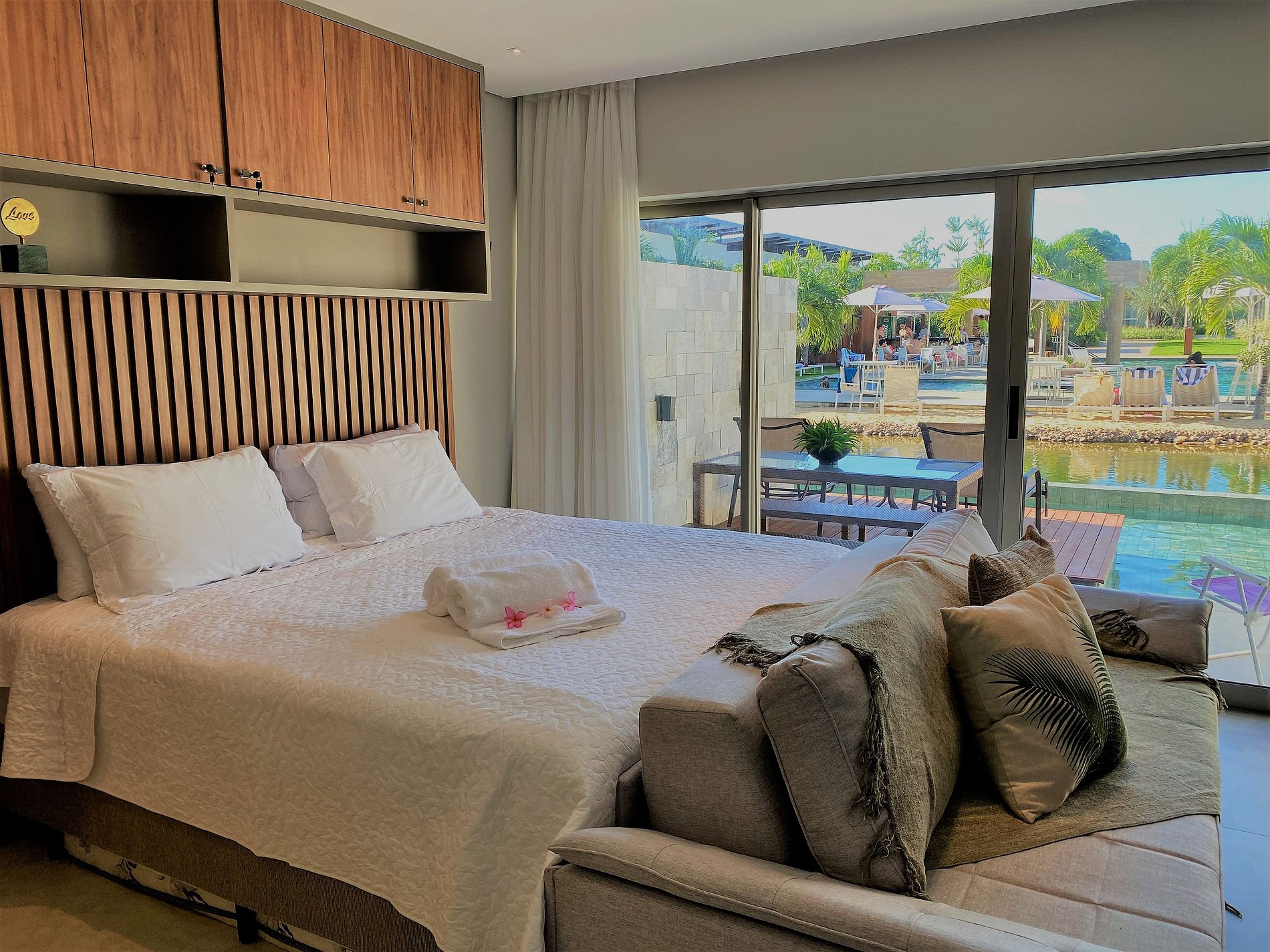A Île de Pipa oferece acomodações de alto padrão que combinam o conforto moderno com o charme rústico. Os quartos e suítes são projetados para proporcionar o máximo de relaxamento, e muitos deles oferecem vistas deslumbrantes para a piscina.