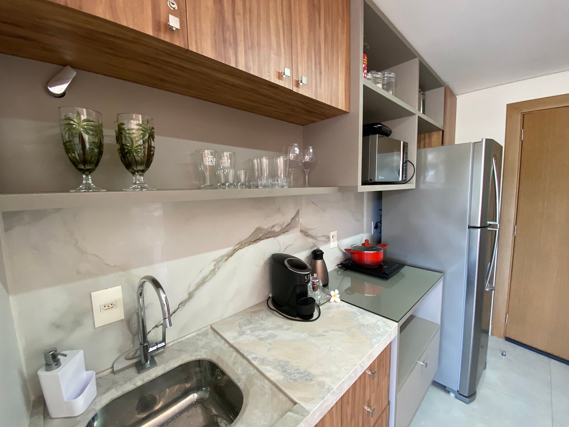 O flat é completo, bem equipado e corresponde as imagens. O condomínio tb é super agradável e com ótima localização.