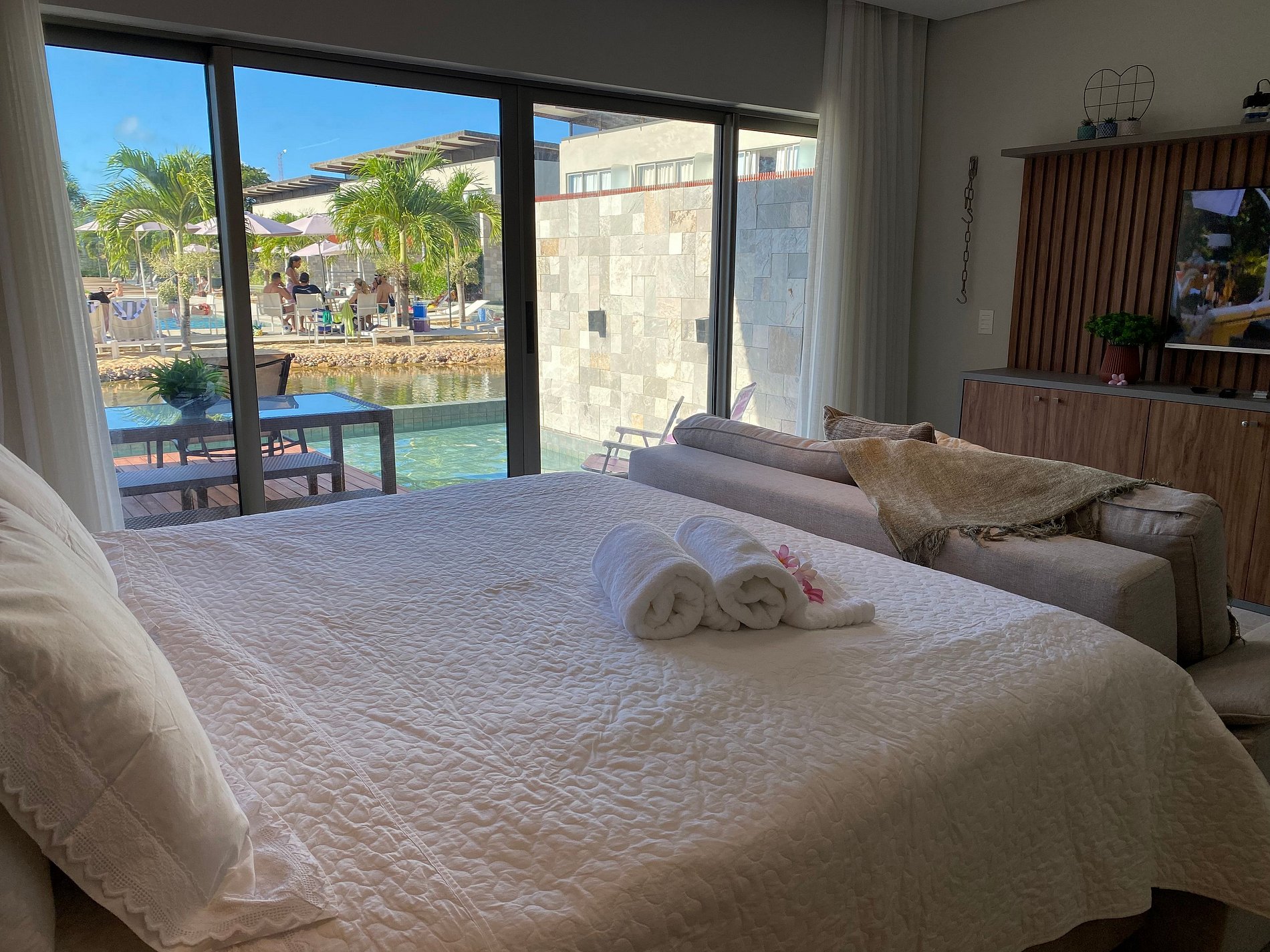 Quarto confortavel, com piscina privativa. Cama otima, apto com toda mobilia para poder fazer pequenas refeicoes.