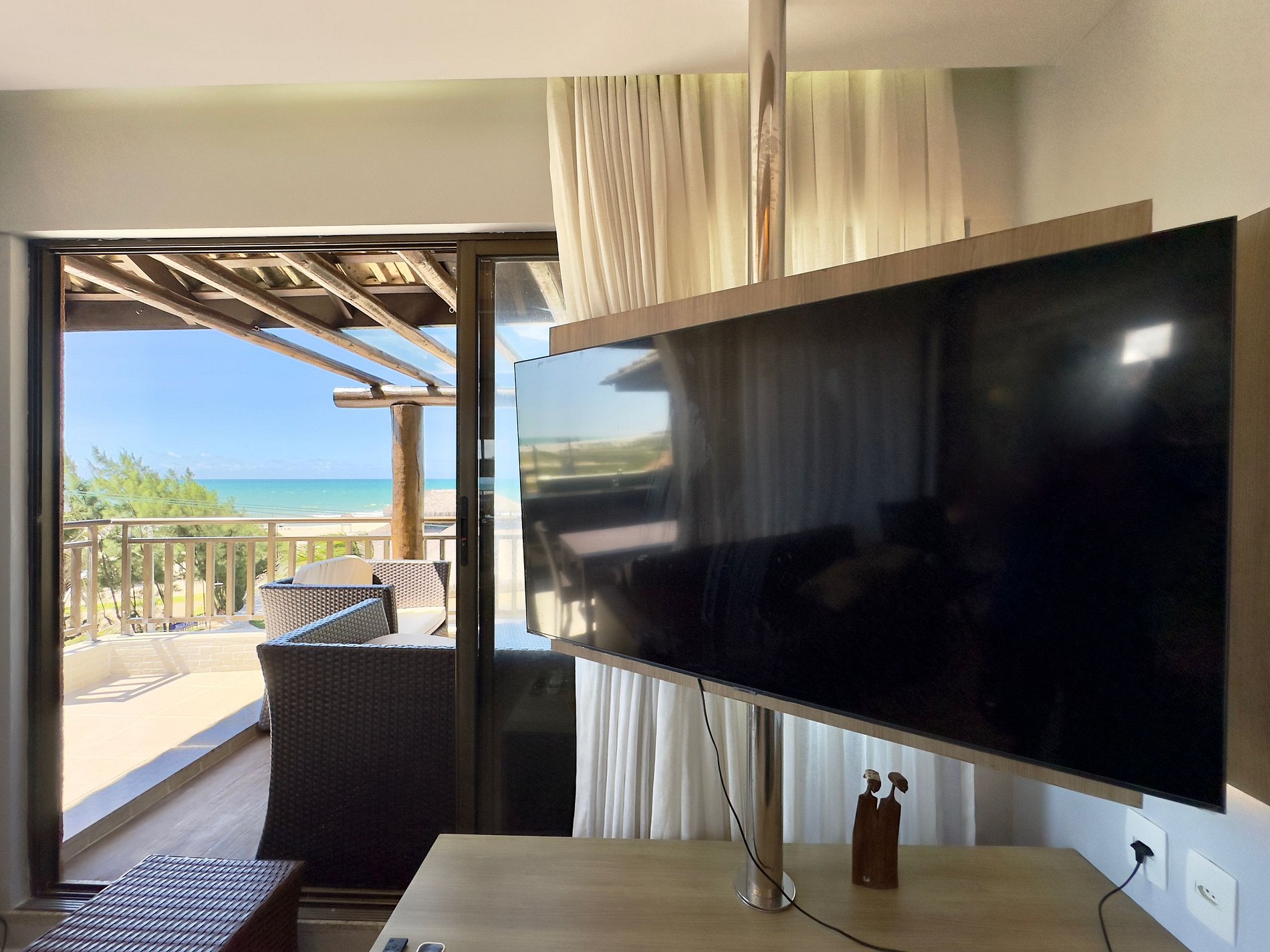 Nenhuma televisão funciona, pois não tem antena e controles sem pilhas, controle de ar condicionado faltando(tínhamos q deixar no Hall caso outro quarto precisasse), único chuveiro elétrico do apartamento estava queimado e a saída de água horrível, todo entupido. Horário de entrada negado 30min antes, nem pra ficar no restaurante do condominio já q a barraca de praia estava fechada. Estávamos em 5 apartamentos e somente essa empresa não autorizou a entrada, tivemos q esperar no carro na porta do condomínio dar exatamente 14h. Detalhe o consumo do restaurante era pago no ato, não iria onerar em absolutamente nada.