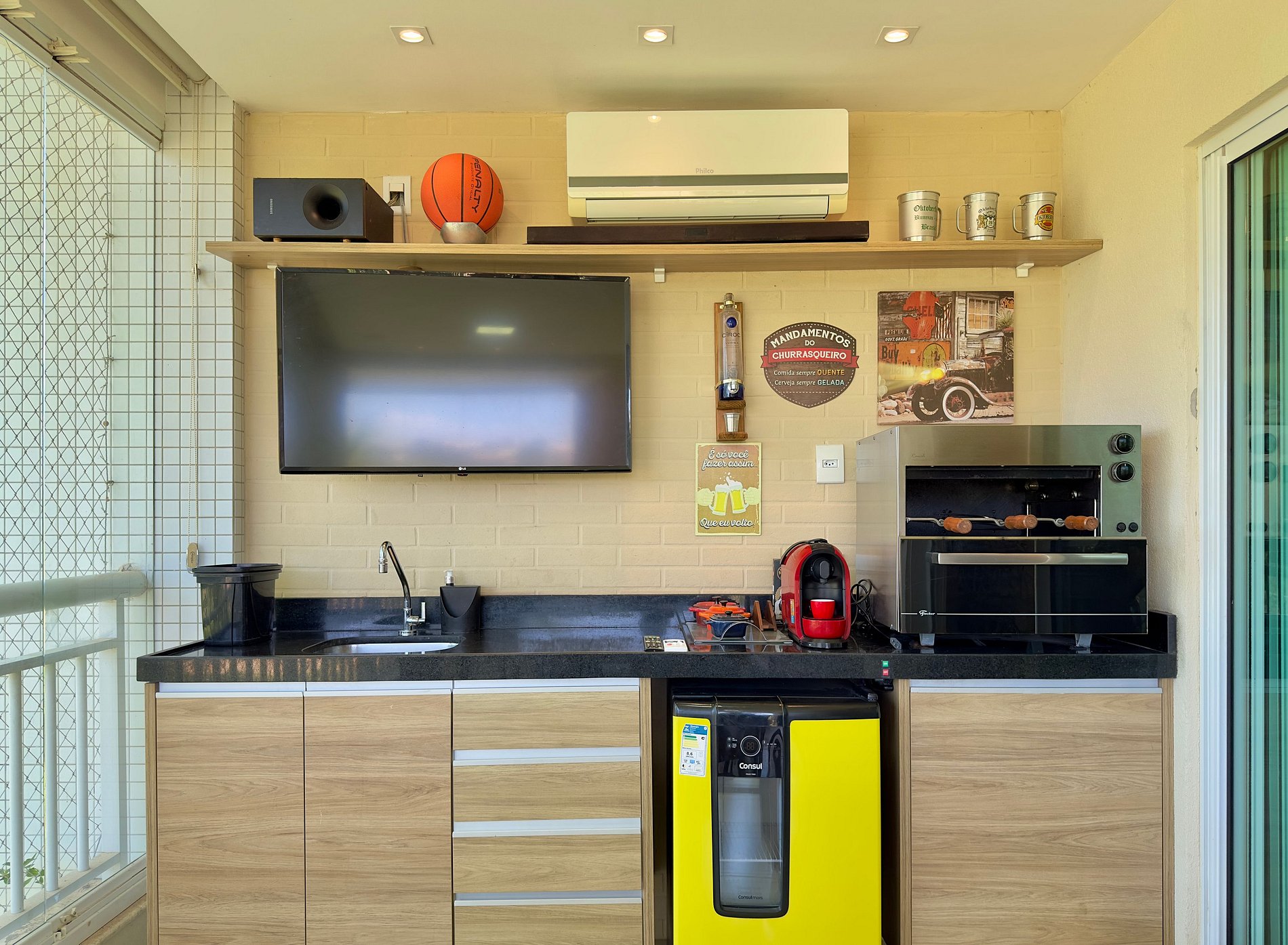 - Varanda com churrasqueira, TV Smart e mini cervejeira;