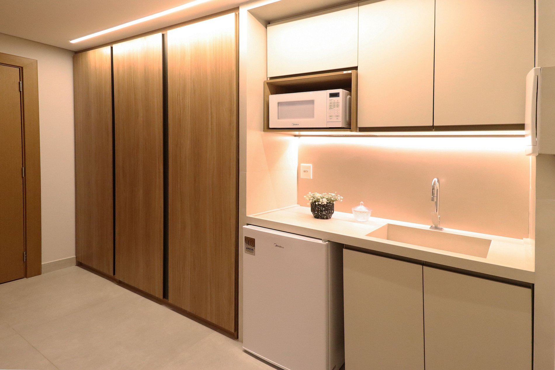 O flat e o resort são incríveis. O projeto arquitetônico e o ambiente criados são arrojados e acolhedores ao mesmo tempo. Flat com muito espaço e bem mobiliado. Preocupação em cada detalhe. O flat estava limpo e organizado quando chegamos. É exatamente o que é apresentado nas fotos. A localização é excelente.