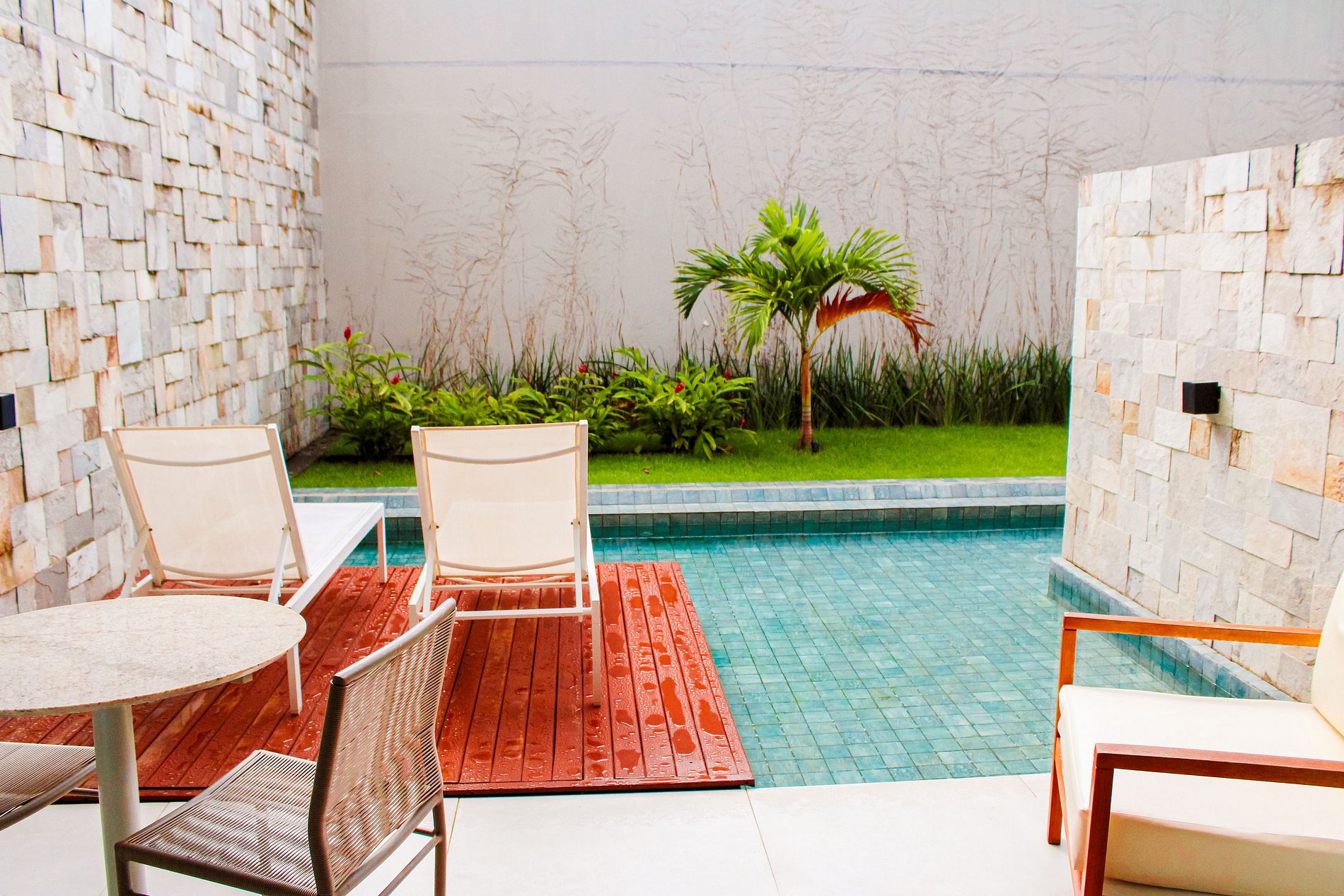 Muy moderna, cómoda, limpia y completa. Bien ubicada. Que la pileta privada no de al patio principal es un acierto, te da más privacidad.