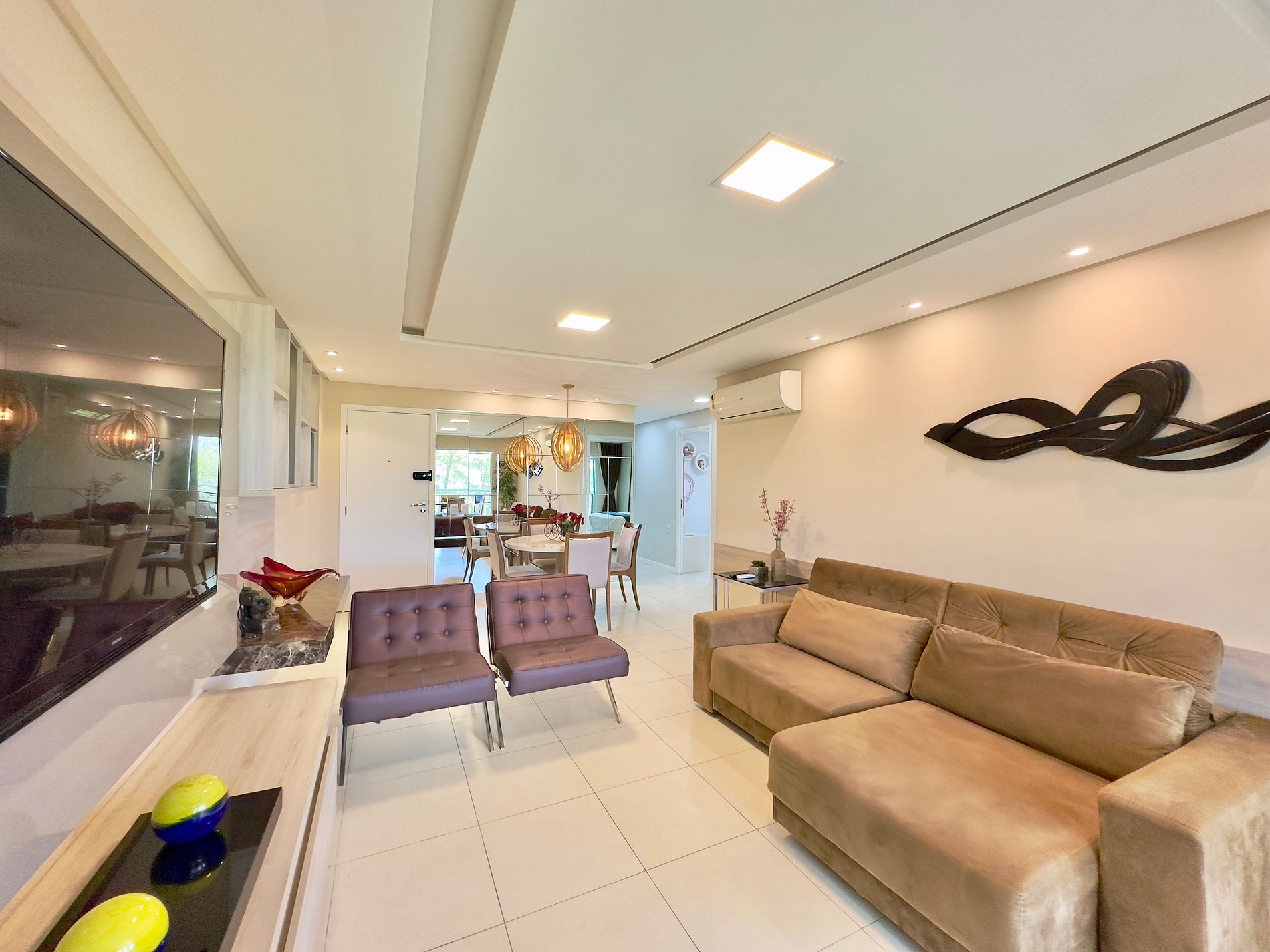 - Sala de estar bem decorada com TV Smart grande, sofá e poltronas, além de uma bela mesa de jantar;