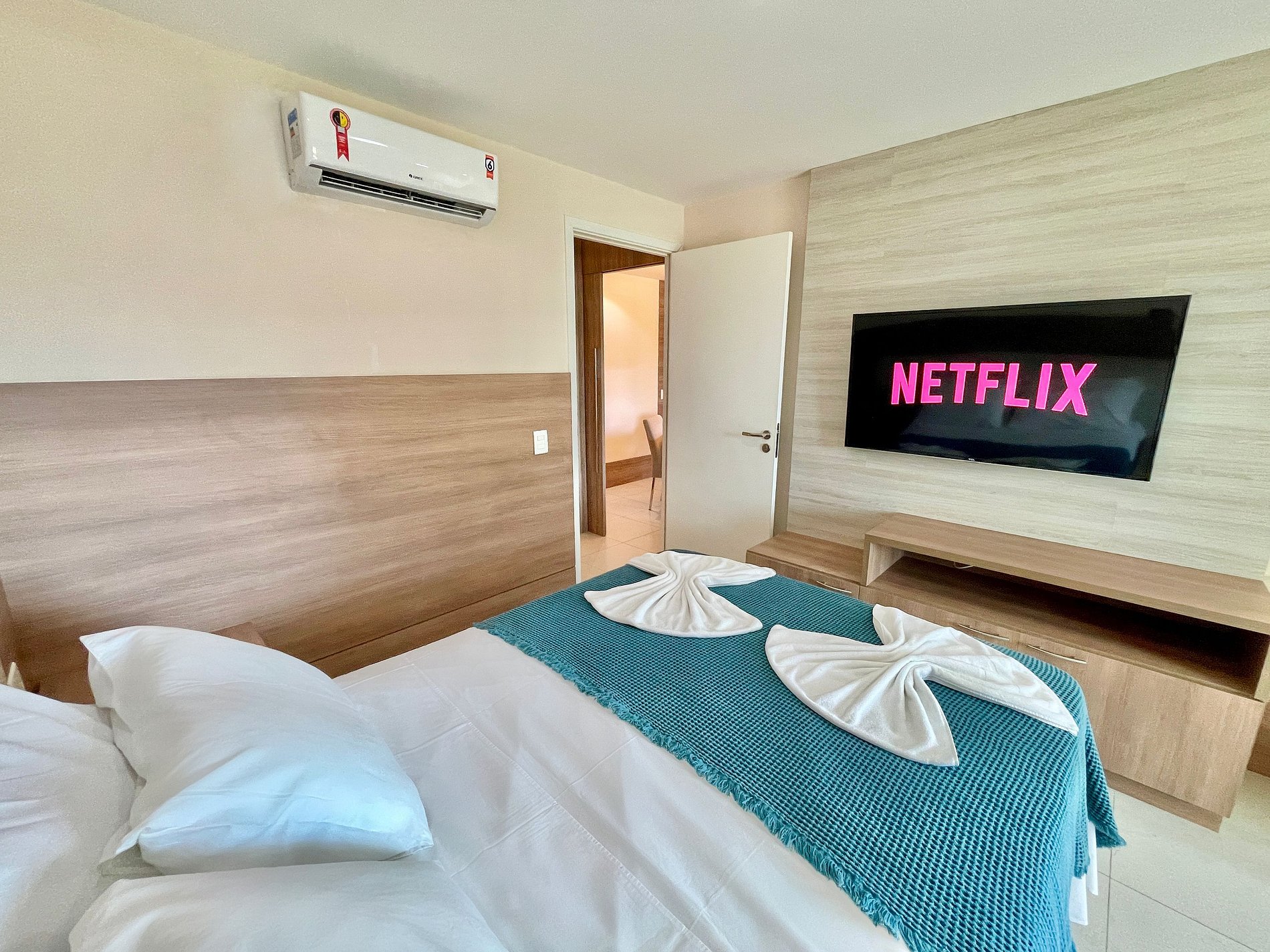 > Segunda Suíte com 2 camas de Solteiro (uma delas tipo "Solteirão" ) + ar-condicionado + TV Smart grande