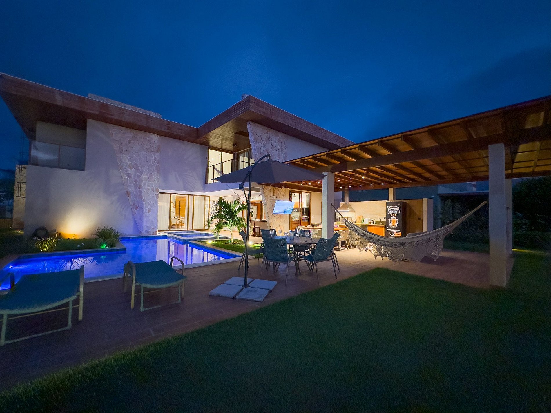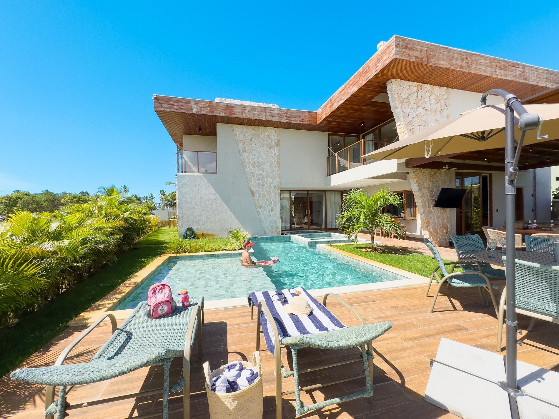 Nuestra Villa es el refugio perfecto para aquellos que buscan lujo, confort y privacidad. De nueva construcción, con menos de un año, ofrece cinco suites, dos de ellas en la planta baja, todas con aire acondicionado, televisores inteligentes y acceso a Internet.