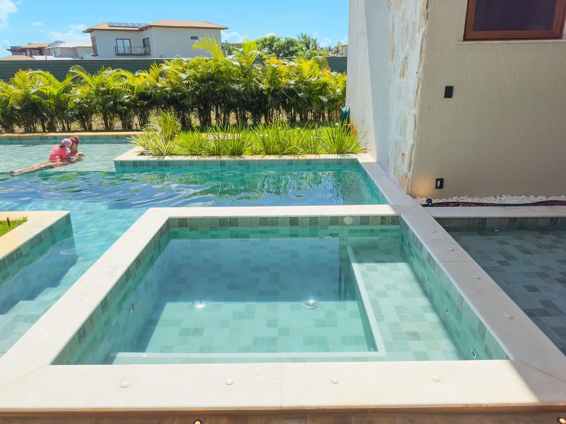 - Piscina con deck húmedo y seco, jacuzzi y bañera romana