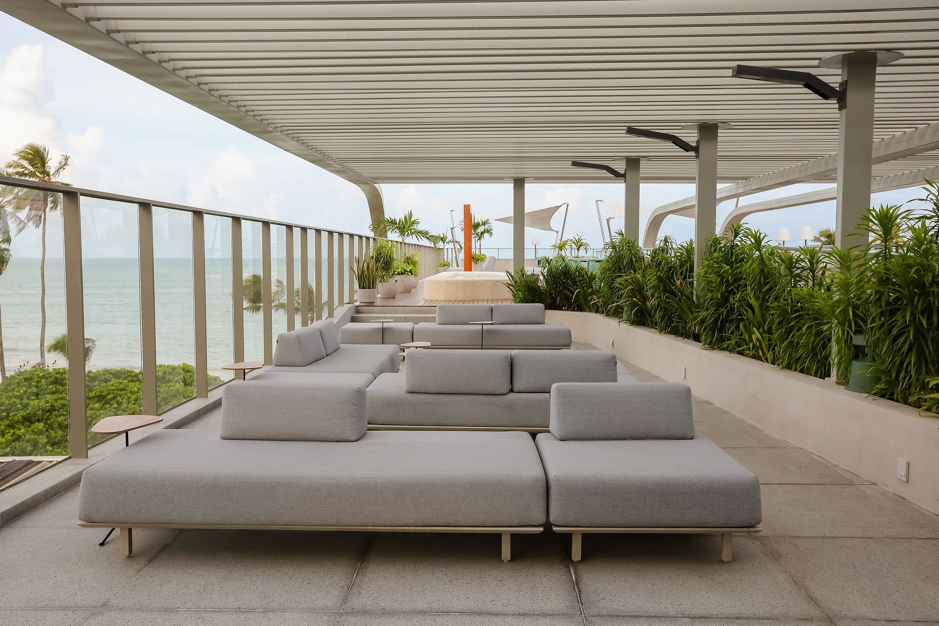Prepare-se para se maravilhar com a joia deste retiro exclusivo: a área de cobertura deslumbrante. Aqui, uma piscina única convida você a mergulhar em águas cristalinas enquanto contempla as vistas panorâmicas do oceano. Relaxe em uma das espreguiçadeiras luxuosas, aproveitando o entardecer único de João Pessoa.