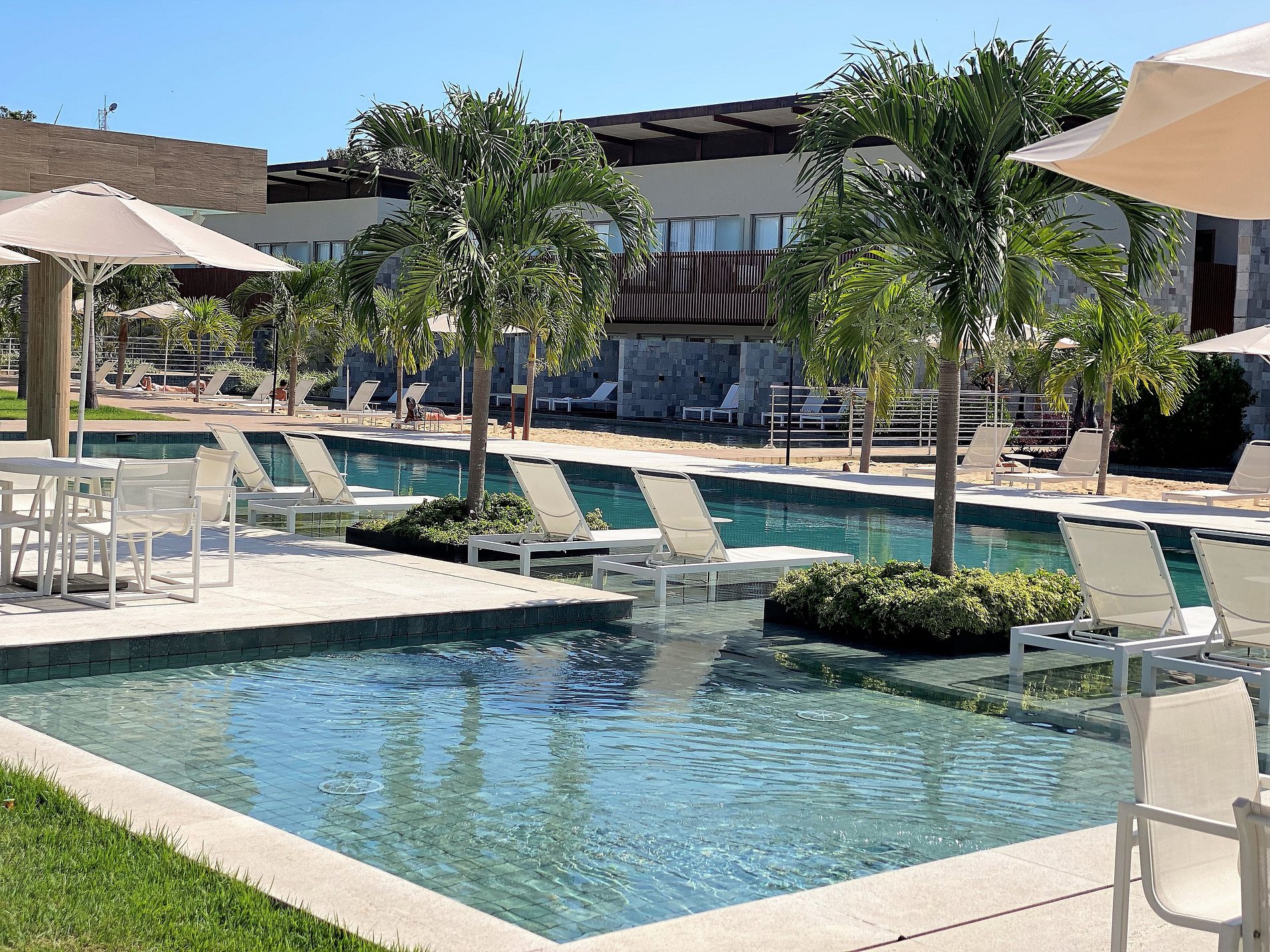 A localização é excelente. O local também é muito bonito e a acomodação limpa e confortável. A área de lazer é ampla e conta com várias piscinas e espreguiçadeiras.