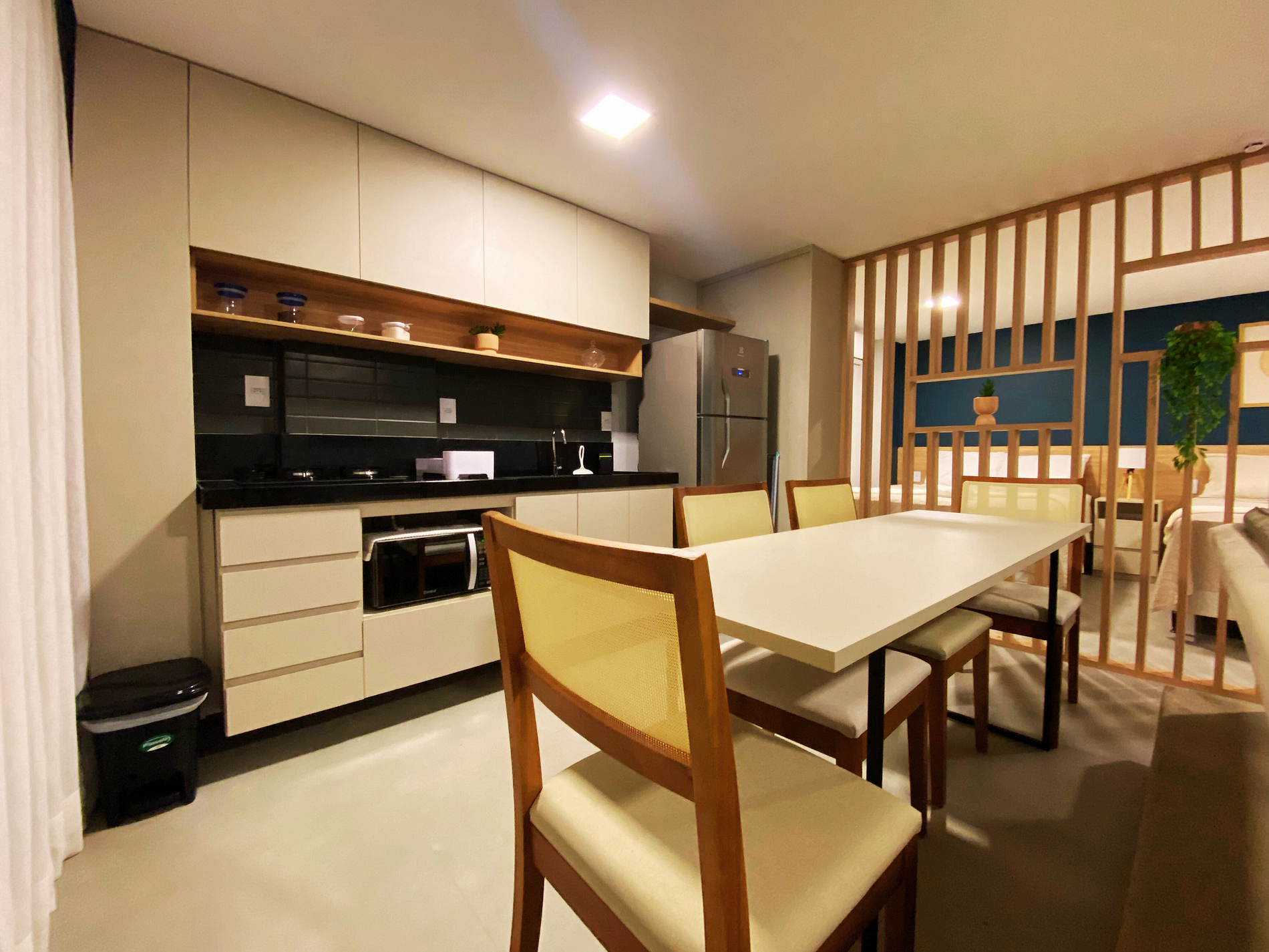 Cada detalhe do FM20 Ocean reflete um compromisso com o luxo e a praticidade. A cozinha equipada com geladeira, mesa, micro-ondas, fogão 4 bocas, cafeteira e utensílios para refeições rápidas é perfeita para aqueles que desejam desfrutar de refeições deliciosas no conforto do flat. Este espaço funcional permite uma experiência completa, combinando a comodidade de uma cozinha bem-equipada com a sofisticação de um ambiente projetado.