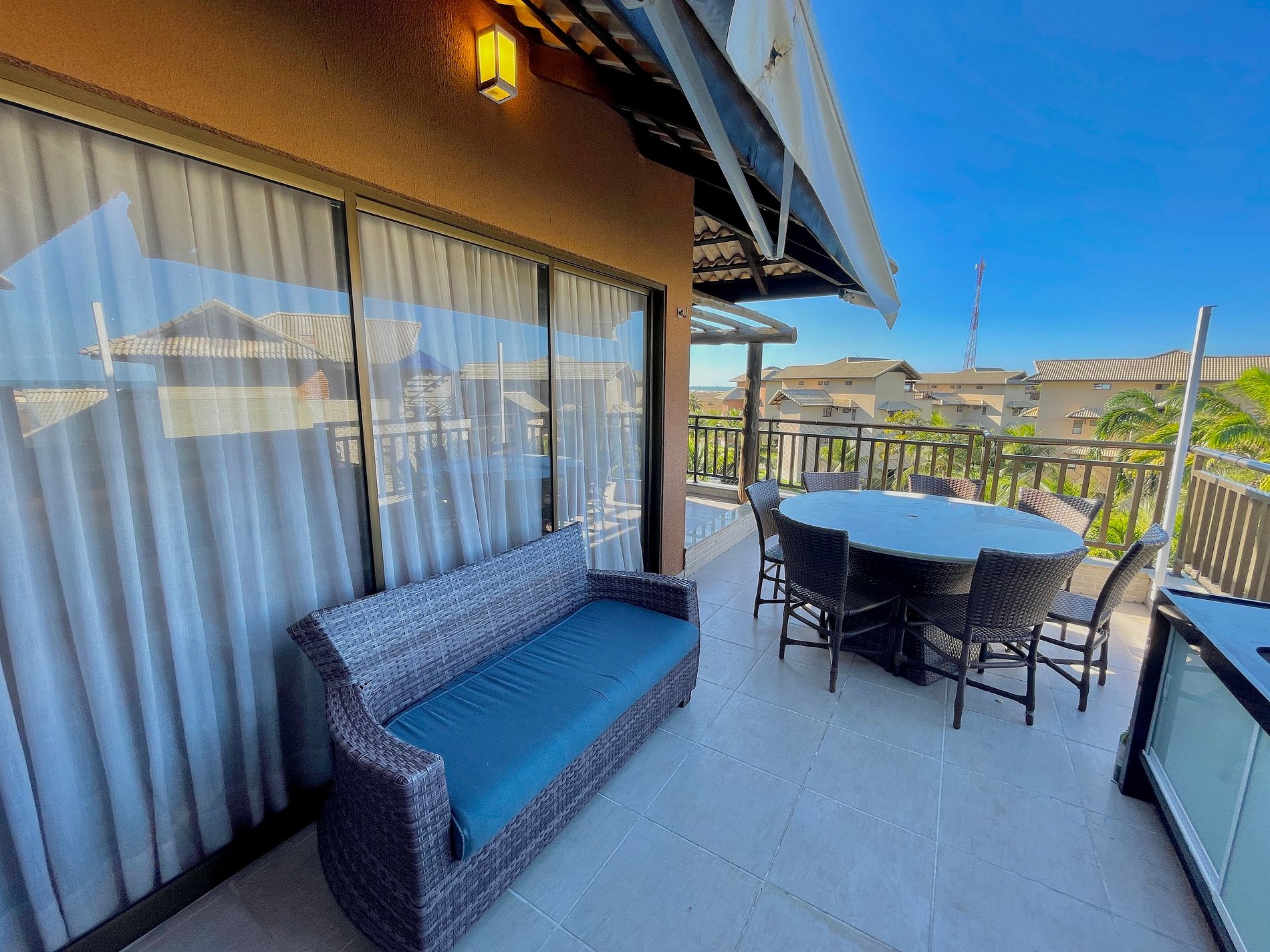 > Amplo apartamento duplex com churrasqueira e mesa para 8 pessoas e vista para o mar na varanda