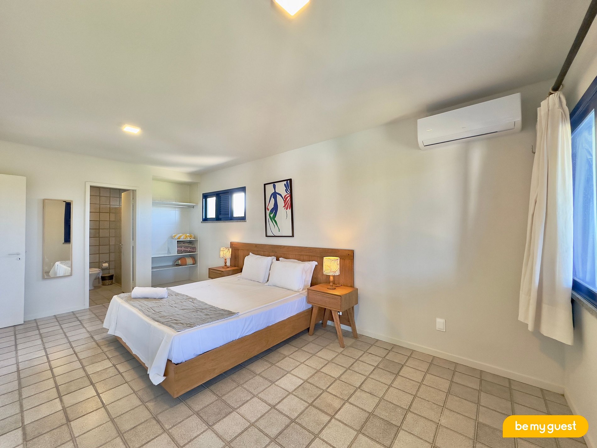 – Suíte 4: cama queen size, ar condicionado, banheiro e armário.