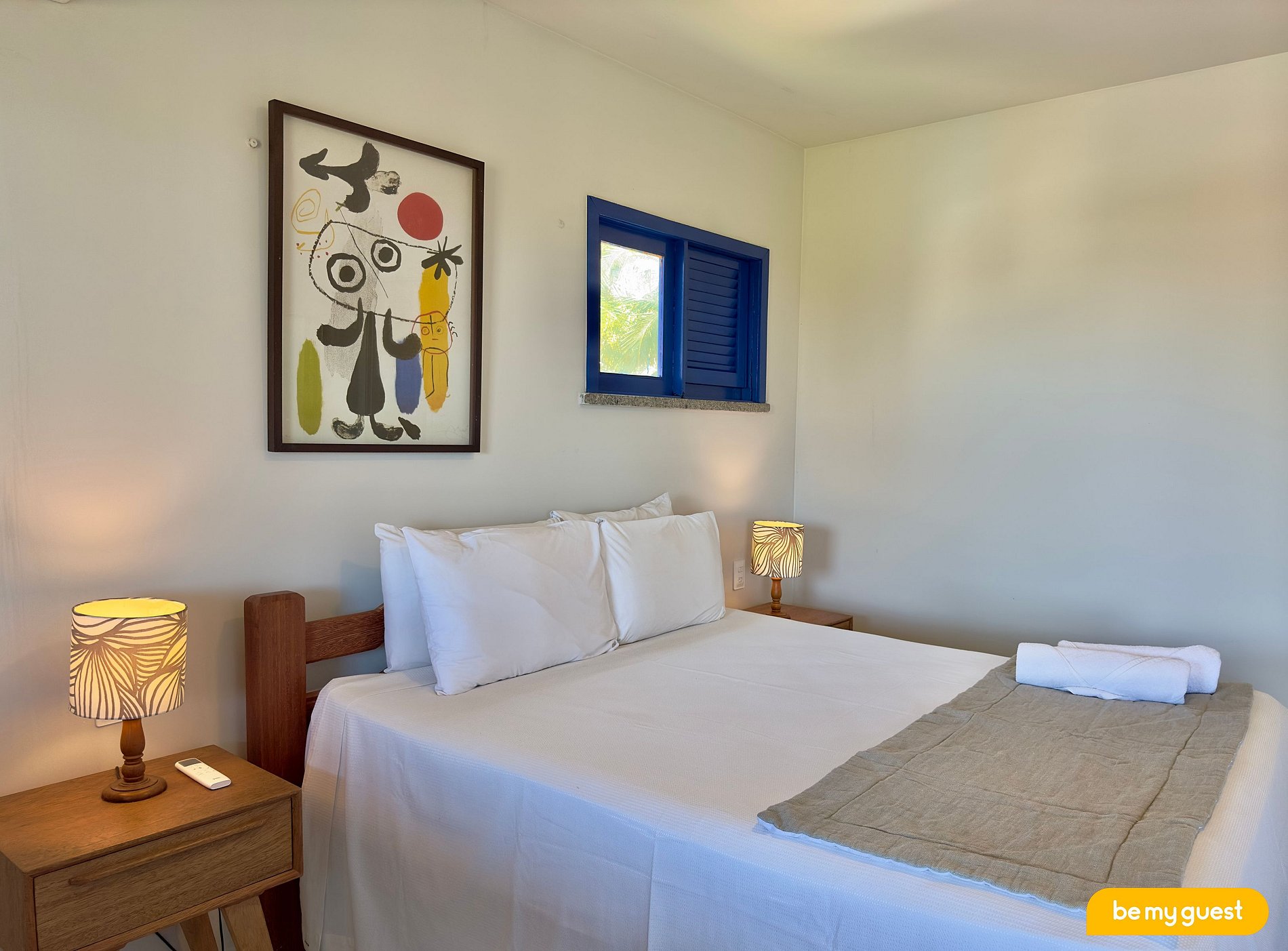 – Suíte 4: cama queen size, ar condicionado, banheiro e armário.