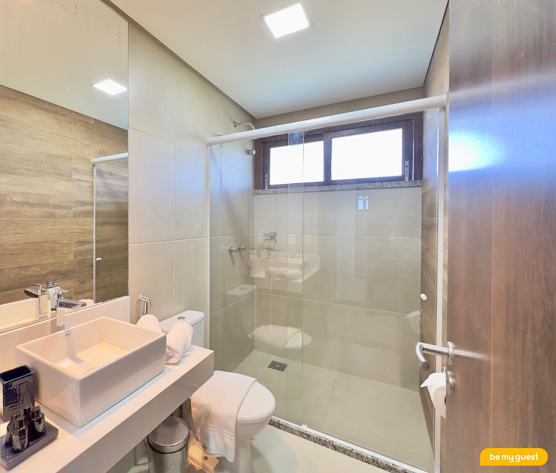 – Suíte 1: Cama king, ar condicionado, banheiro, armário, TV, acesso ao terraço.