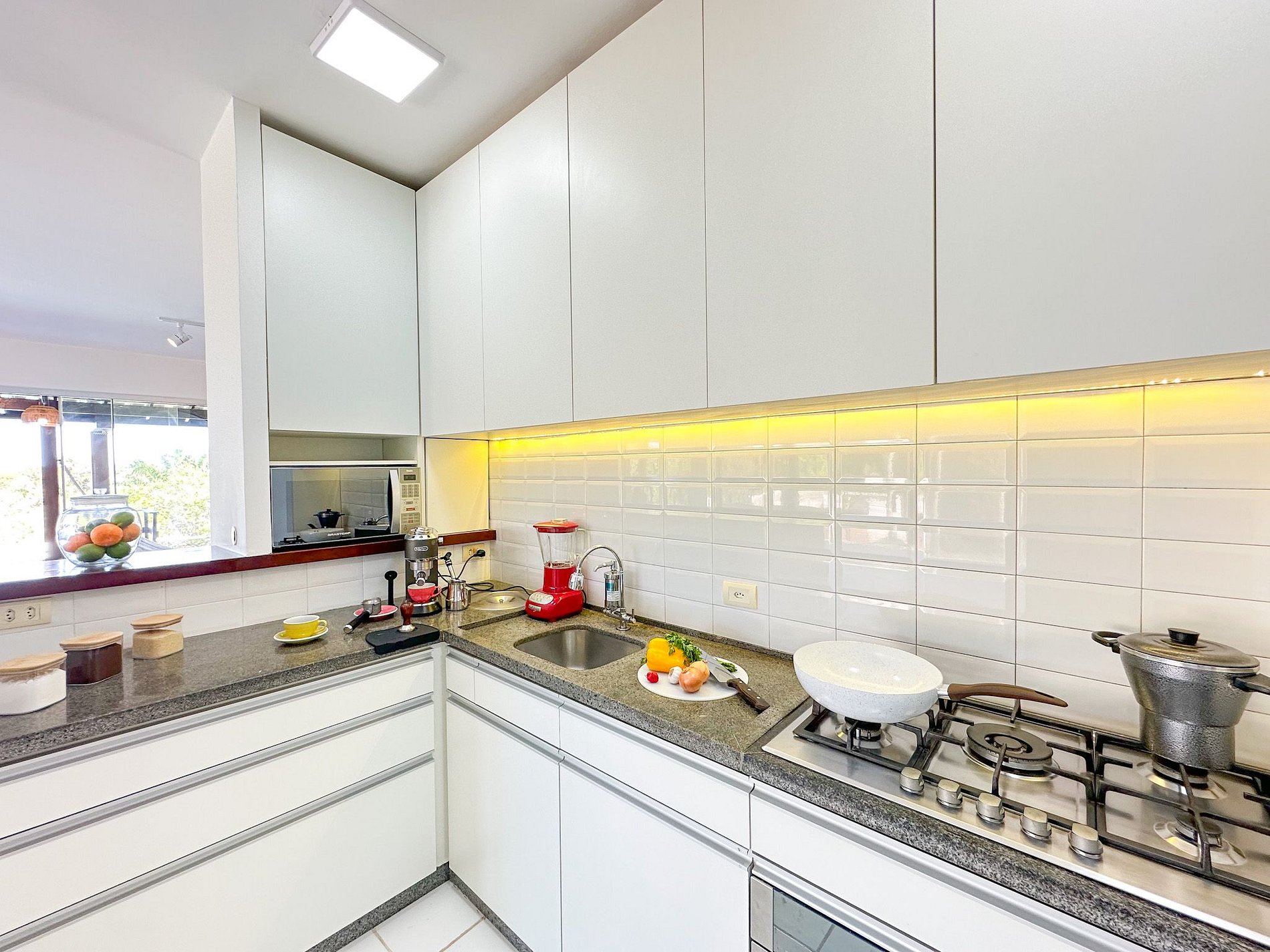 La cuisine entièrement équipée est prête pour que vous puissiez préparer vos plats préférés, possédant une cuisinière, un four, un réfrigérateur, un congélateur, un lave-vaisselle et tous les ustensiles nécessaires. De plus, nous offrons un barbecue pour d’agréables moments en plein air.