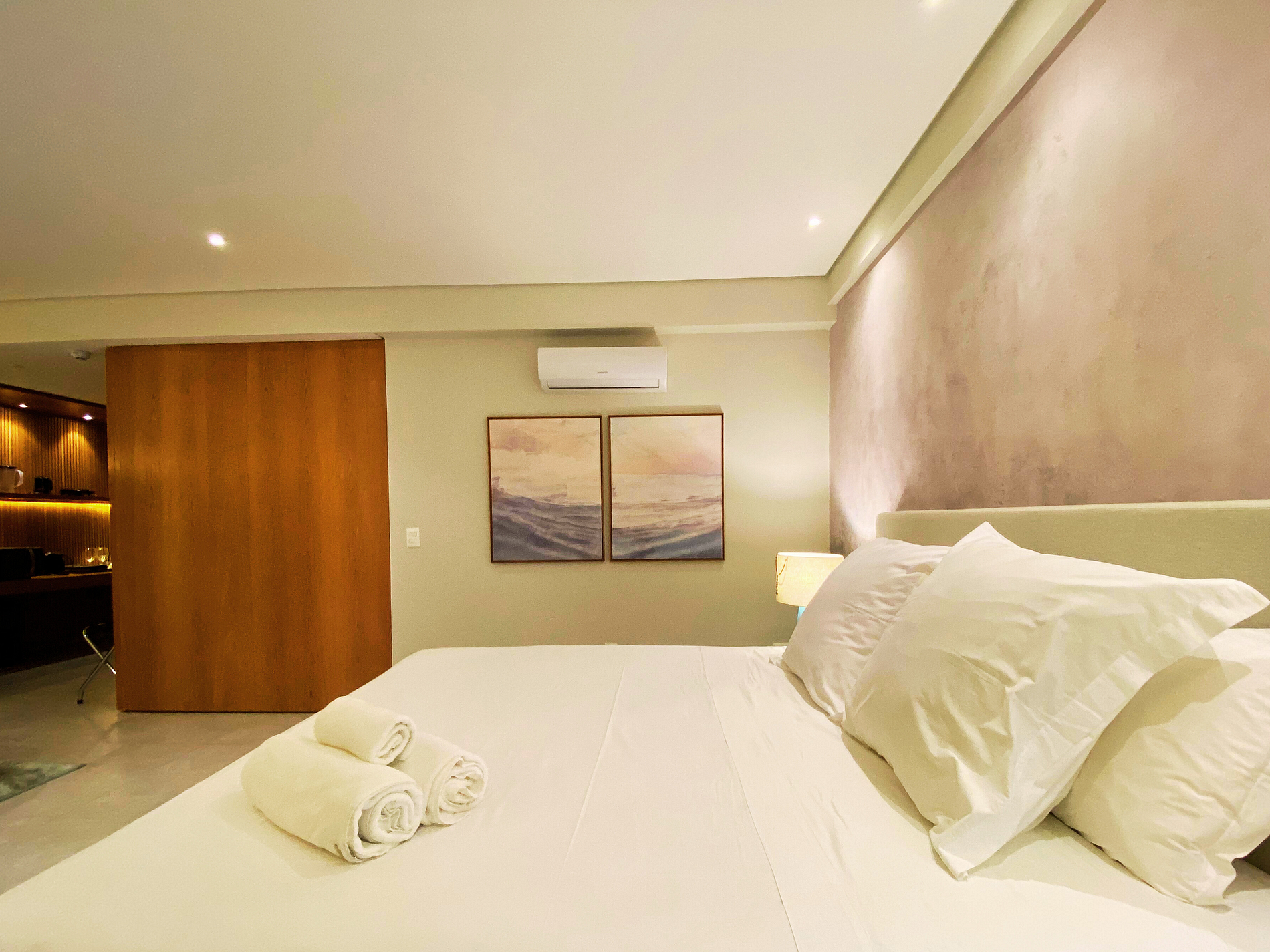 Bom apartamento. Vazamento de água no box que molhava todo o quarto. Faltou uma torradeira que nas fotos dizia ter. Como sugestão de melhoria poderia ter um fogao no quarto para fazer algumas refeições e tambem um robo aspirador de pó seria essencial, visto que a limpeza é tercerizada e cobrada a parte, ajudaria a manter o chão sem areia ao menos. Quanto ao local, apesar da excelente estrutura não é um resort e sim um excelente hotel. Acesso a praia no geral da cidade é ruim, tem que descer ladeiras de no minimo 15 minutos de caminhada. Restaurante Amary apesar de bom é caro e estava servindo buffet de cafe reduzido, mesmo mantendo o valor normal.