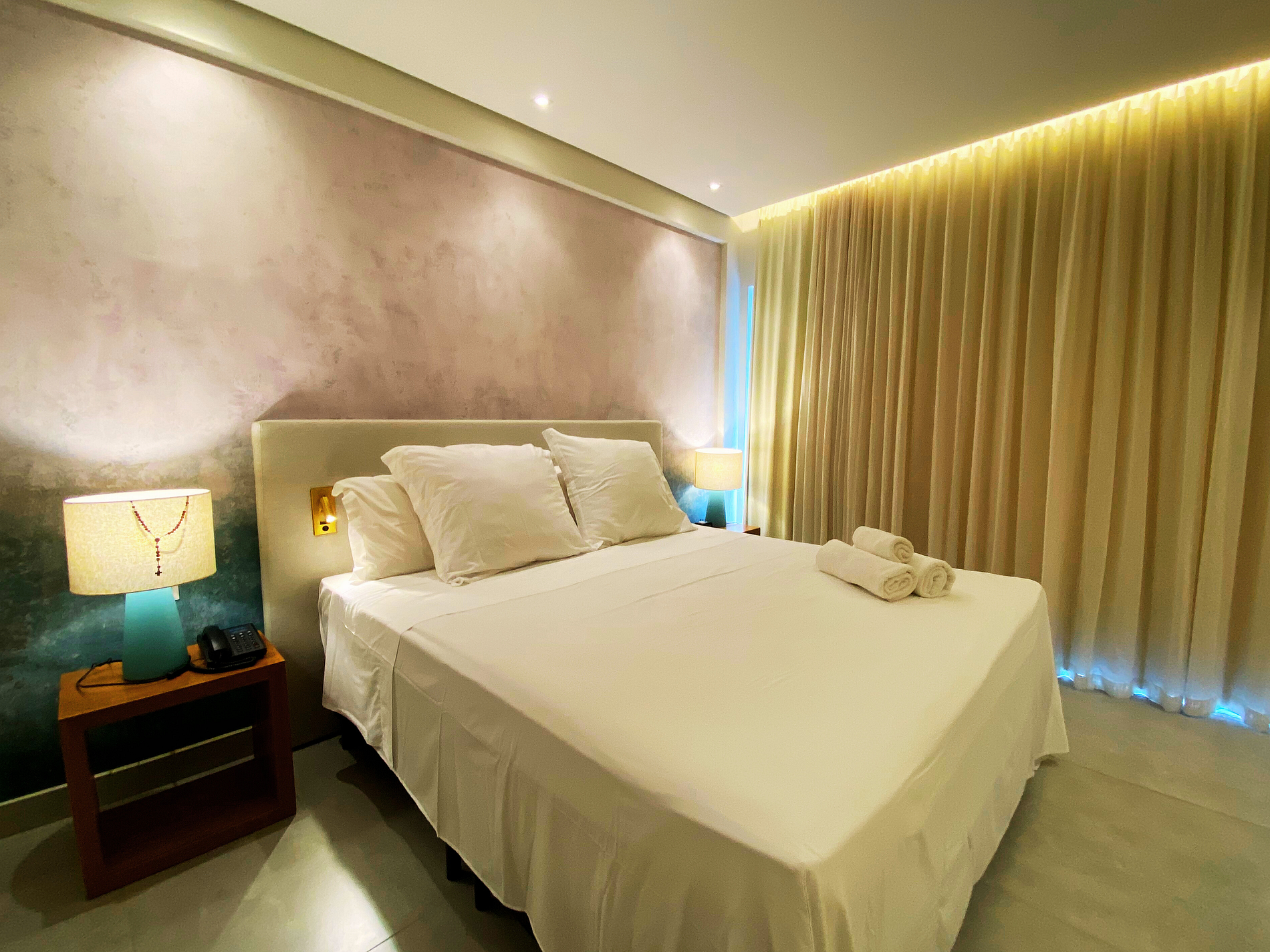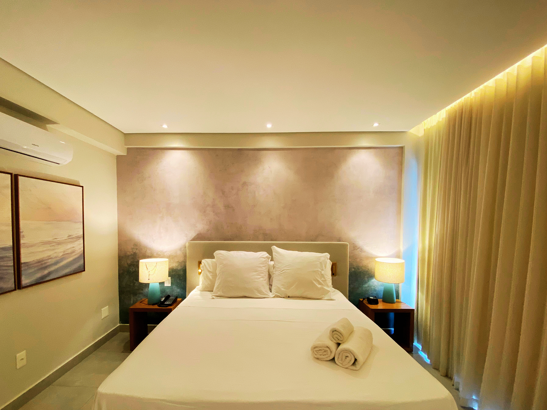 Bom apartamento. Vazamento de água no box que molhava todo o quarto. Faltou uma torradeira que nas fotos dizia ter. Como sugestão de melhoria poderia ter um fogao no quarto para fazer algumas refeições e tambem um robo aspirador de pó seria essencial, visto que a limpeza é tercerizada e cobrada a parte, ajudaria a manter o chão sem areia ao menos. Quanto ao local, apesar da excelente estrutura não é um resort e sim um excelente hotel. Acesso a praia no geral da cidade é ruim, tem que descer ladeiras de no minimo 15 minutos de caminhada. Restaurante Amary apesar de bom é caro e estava servindo buffet de cafe reduzido, mesmo mantendo o valor normal.