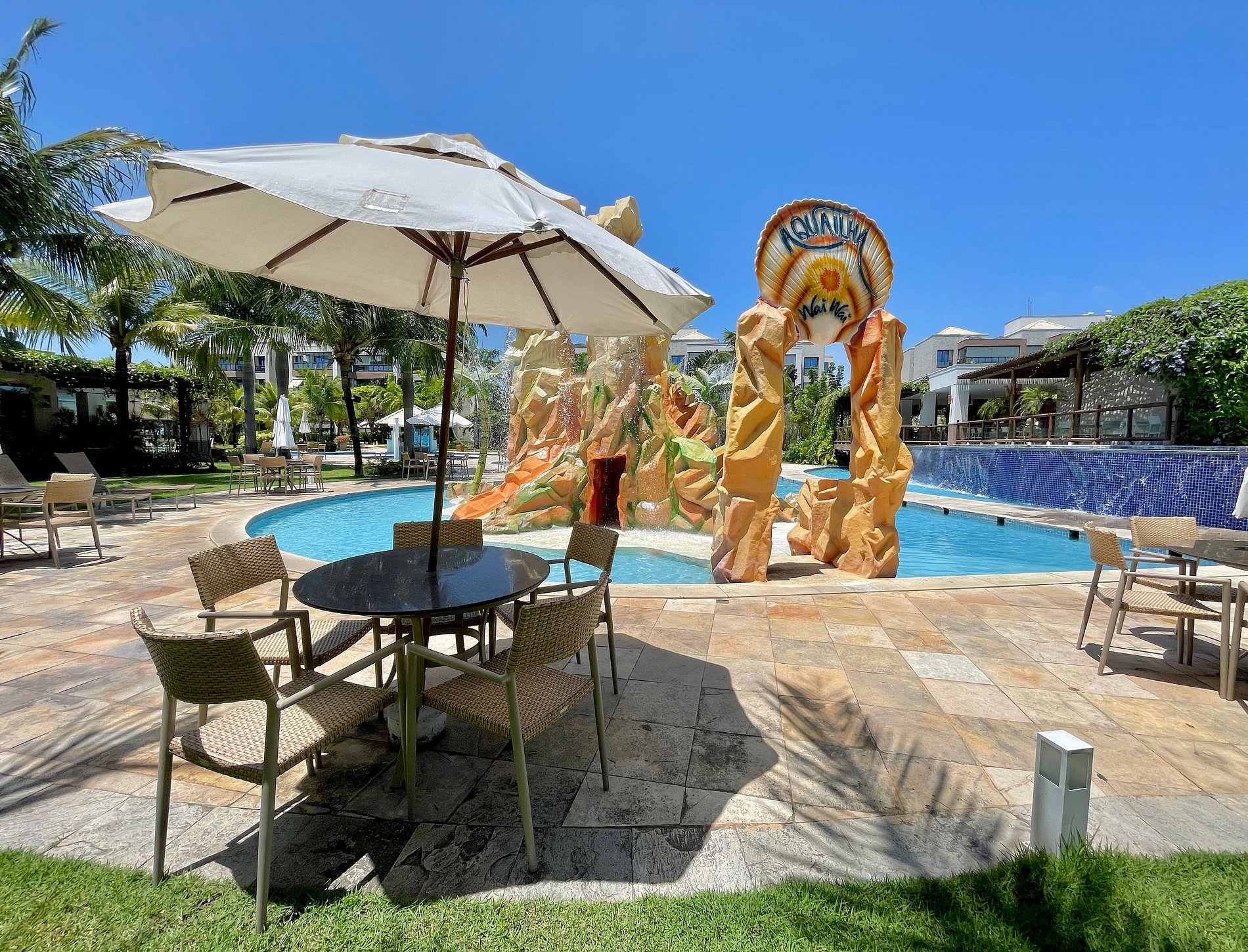 Apartamento situado próximo ao restaurante e piscina infantil, com uma varanda maravilhosa que se conecta a uma vista incrível do resort! Esse completo apartamento conta com: