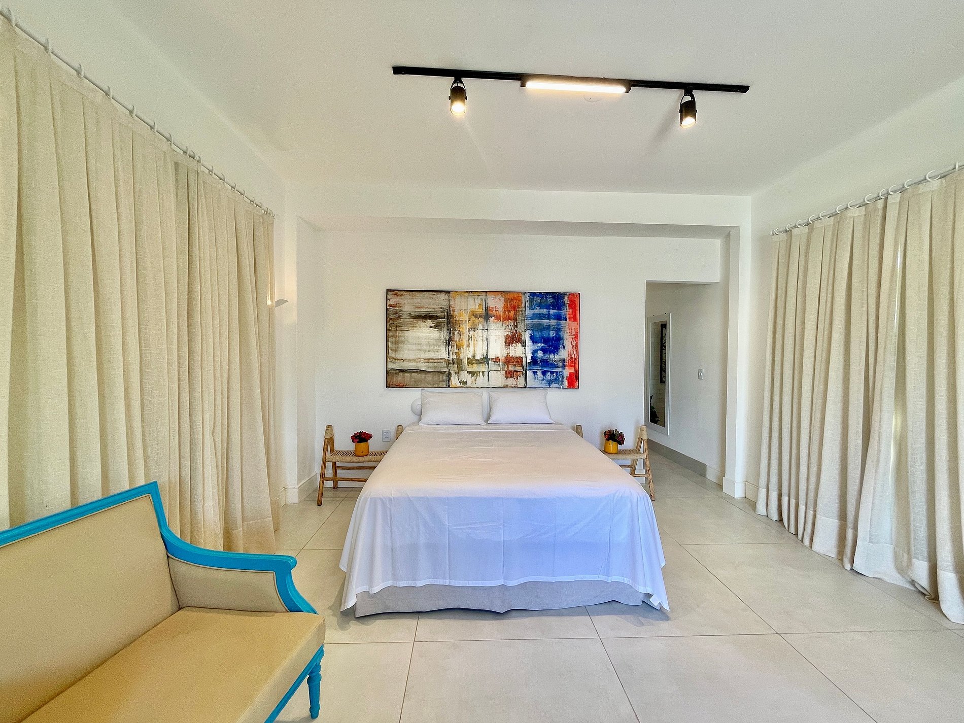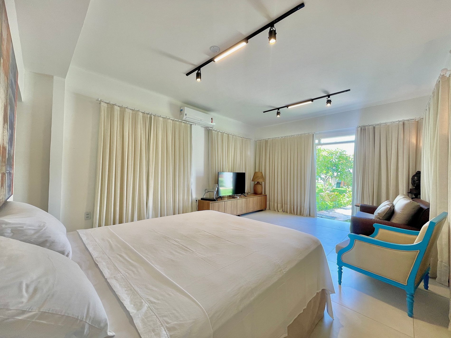 > Suíte Master bem ampla que fica em uma área exclusiva da casa e possui Cama Queen, TV Smart, ar condicionado, poltronas, closet e um banheiro sem igual
