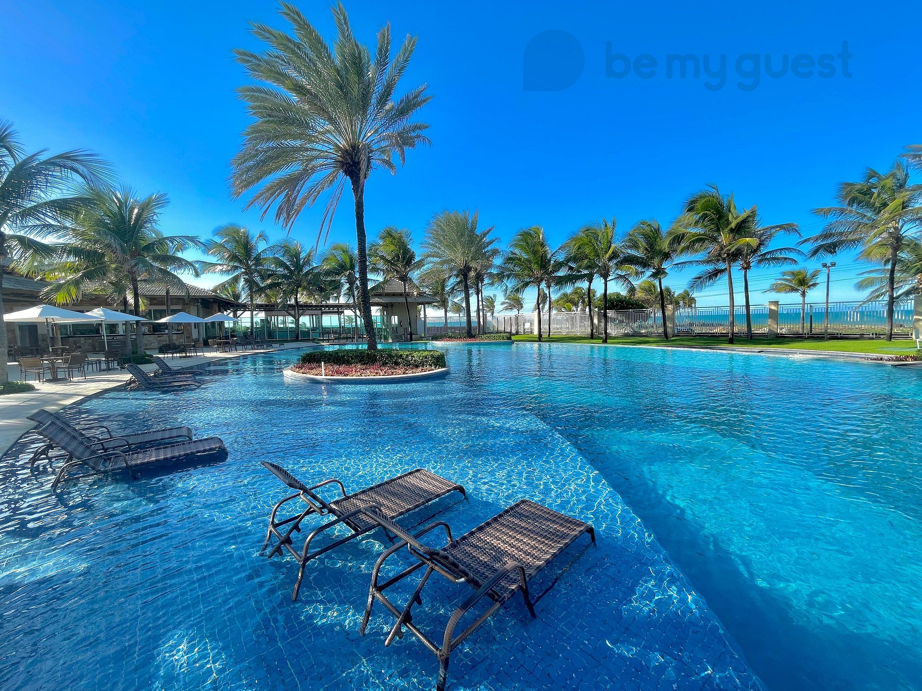 Apto possui varanda conectada com área de lazer do resort!