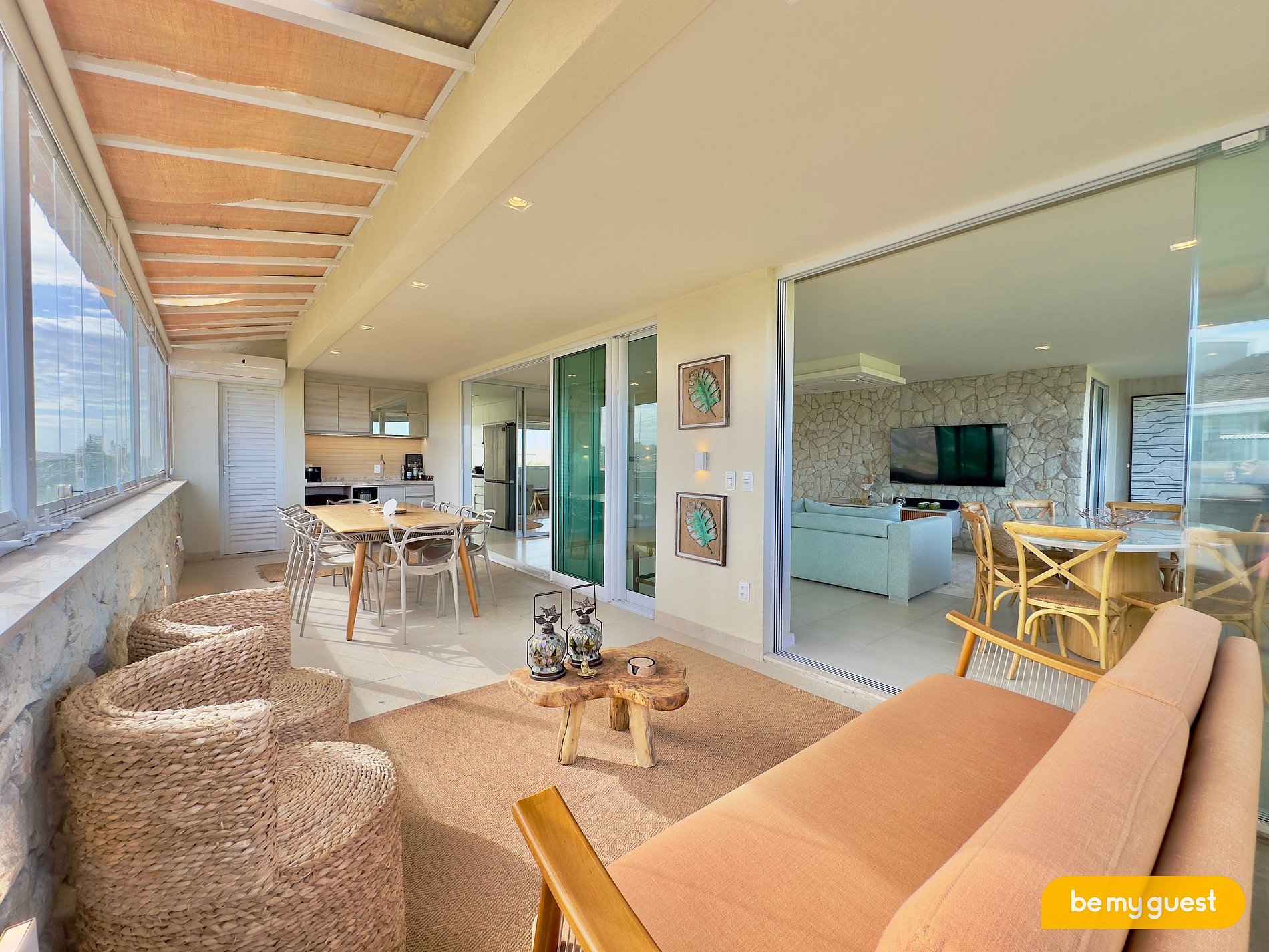 - Sala de Estar super ampla com ar condicionado central, TV Smart grande e uma bela mesa de jantar com vista panorâmica do resort