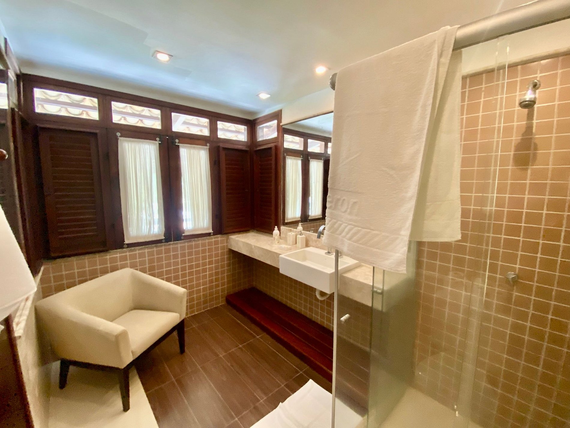 A casa possui uma área externa excelente, ampla e confortável, ideal para grupos grandes (éramos 15 pessoas). É o ponto forte da propriedade, oferecendo ótimo espaço de convivência e lazer. No entanto, ao chegarmos, os quartos inferiores estavam fechados e com forte cheiro de mofo, inclusive nas cortinas. Apesar de ter 7 suítes, só duas têm chuveiro elétrico — um deles apresentou curto-circuito, exigindo uso de extintor. Aparentemente, os anfitriões não estão acostumados com estadias longas, como a nossa de 9 noites, o que comprometeu a manutenção. Alguns banheiros tinham mau cheiro, o lavabo entupia, e ar-condicionados vazavam água. A parte elétrica não suportava bem o uso simultâneo de aparelhos, causando quedas de energia frequentes. Sentimos falta de espreguiçadeiras na área externa, que deixariam o ambiente ainda mais agradável.