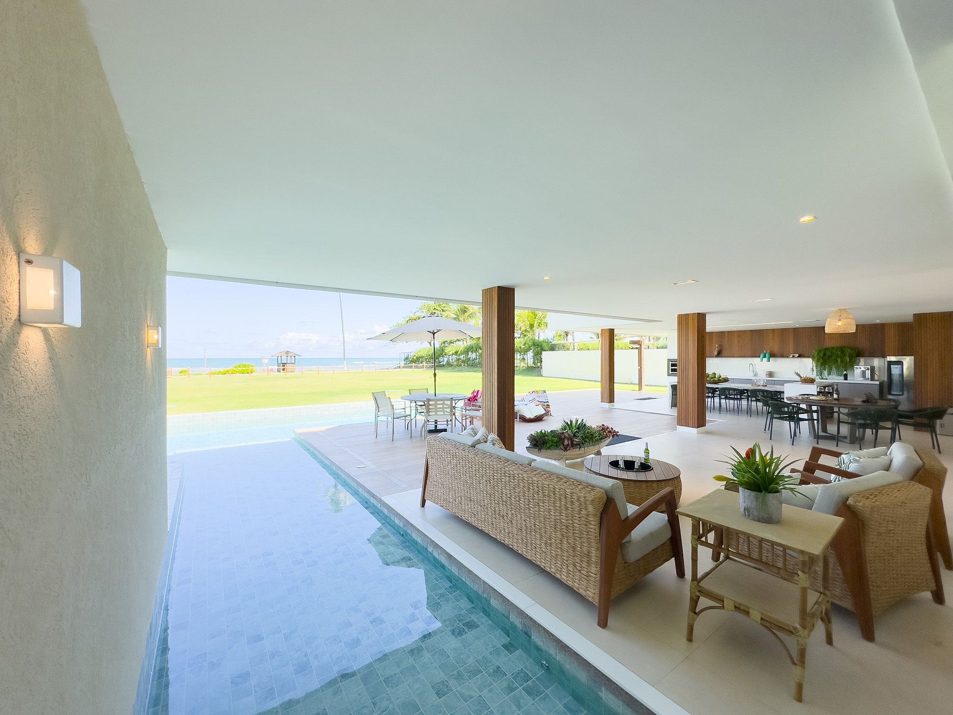 A joia da Villa Corais é a área de lazer com uma piscina iluminada e hidromassagem com uma vista para os corais da praia de Genipabu, um convite irresistível para relaxar e aproveitar o sol baiano em total privacidade.