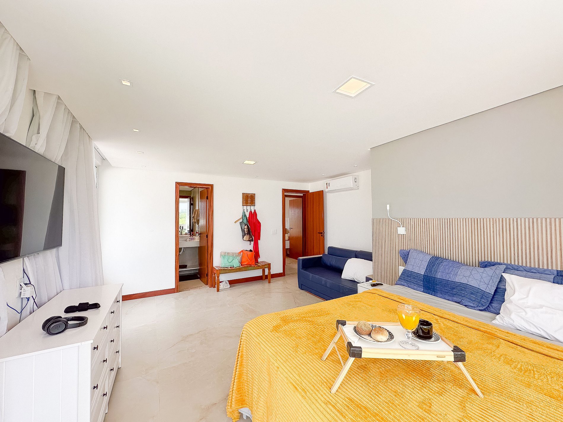 Quartos climatizados, equipados com Smart TV com Streaming e blackout nas cortinas