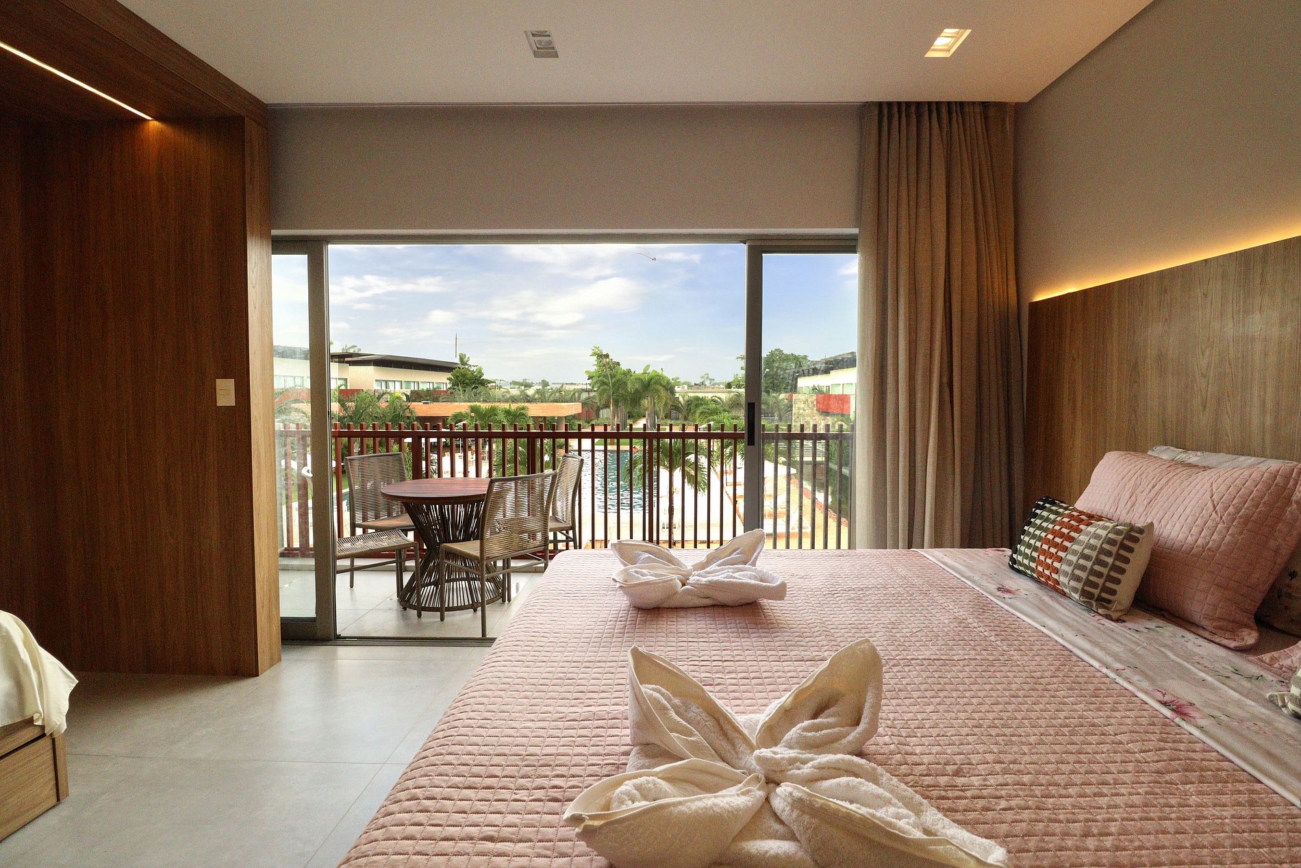 O flat e o resort são incríveis. O projeto arquitetônico e o ambiente criados são arrojados e acolhedores ao mesmo tempo. Flat com muito espaço e bem mobiliado. Preocupação em cada detalhe. O flat estava limpo e organizado quando chegamos. É exatamente o que é apresentado nas fotos. A localização é excelente.