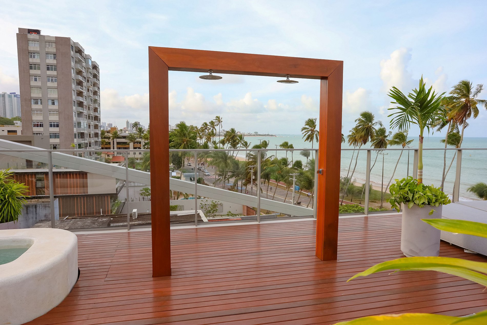 Prepare-se para se maravilhar com a joia deste retiro exclusivo: a área de cobertura deslumbrante. Aqui, uma piscina única convida você a mergulhar em águas cristalinas enquanto contempla as vistas panorâmicas do oceano. Relaxe em uma das espreguiçadeiras luxuosas, aproveitando o entardecer único de João Pessoa.