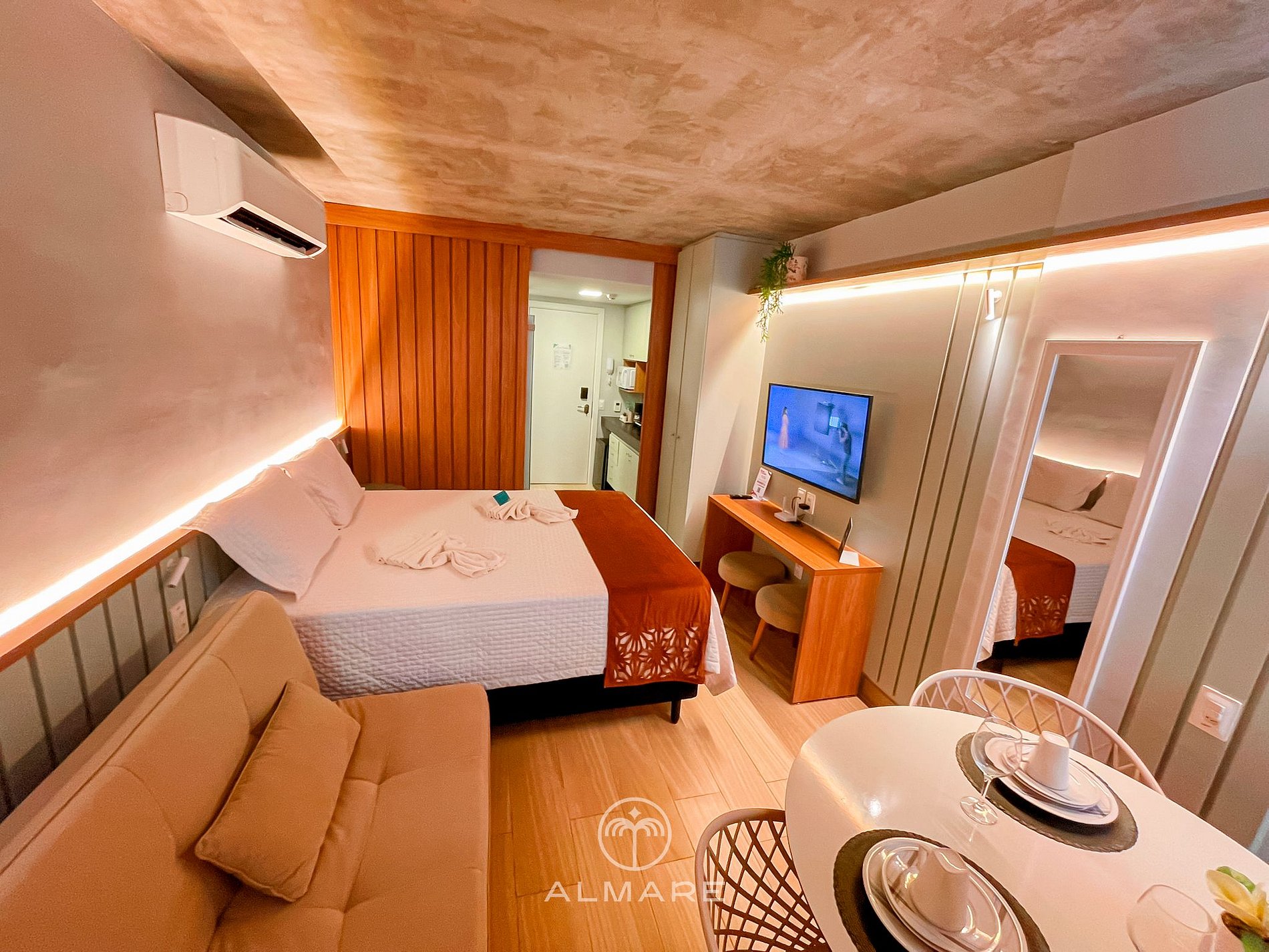 O flat possui um design moderno e funcional, com acabamentos de alta qualidade e uma atmosfera acolhedora. Com uma área de 24m², cada centímetro deste espaço foi cuidadosamente planejado para oferecer o máximo de conforto e conveniência.
