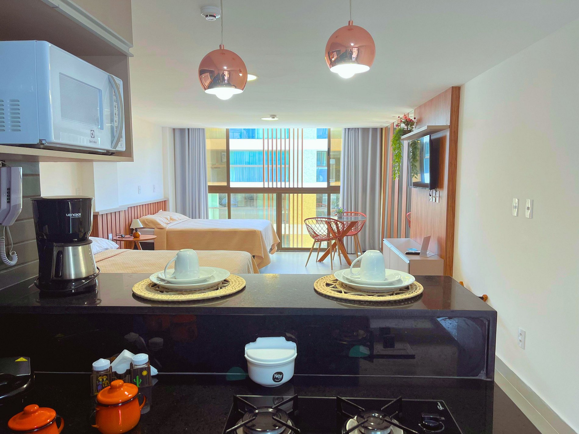 Flat estava muito limpo e organizado, tudo funcionando perfeitamente, localização muito boa e a vista da piscina maravilhosa, voltaria mais vezes.
