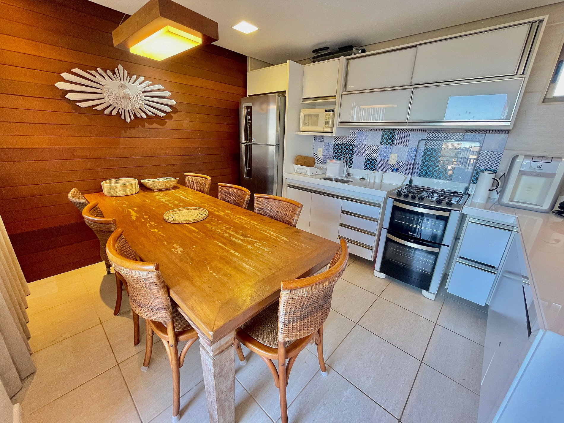 > Amplo apartamento duplex com churrasqueira e mesa para 8 pessoas e vista para o mar na varanda