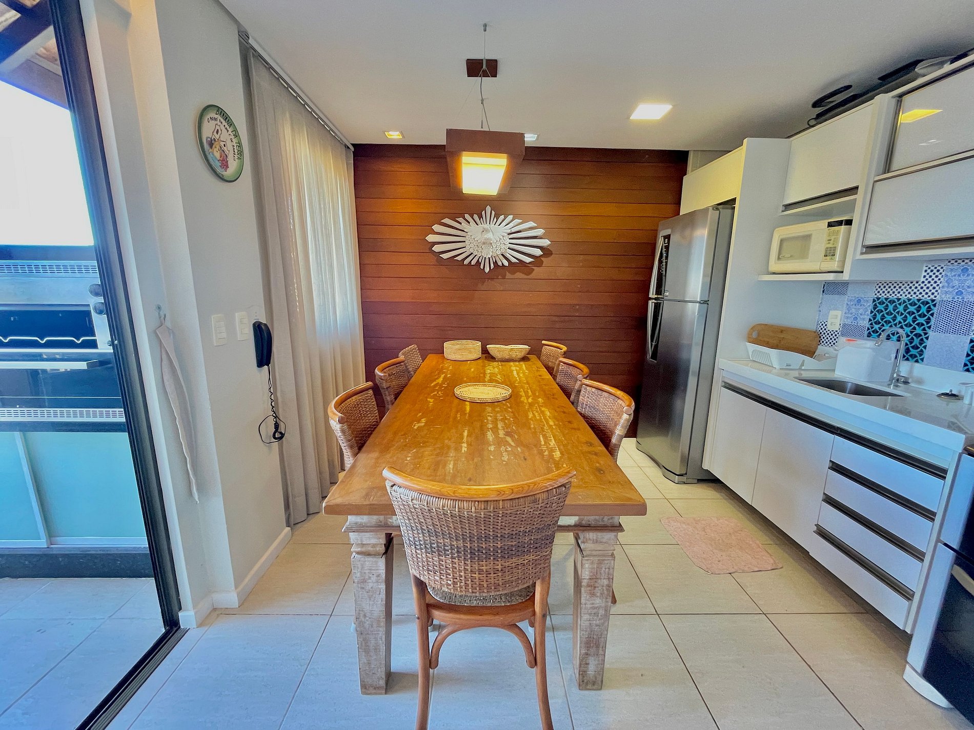 > Amplo apartamento duplex com churrasqueira e mesa para 8 pessoas e vista para o mar na varanda