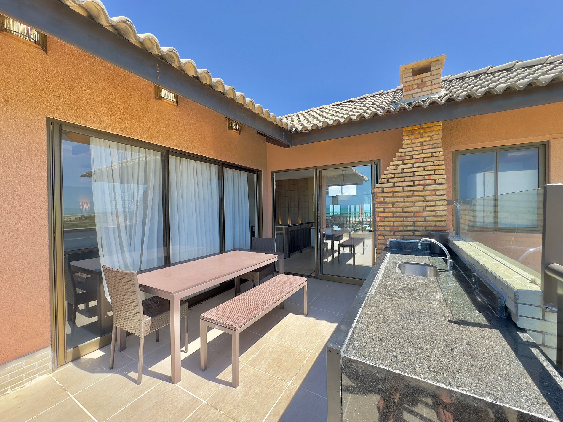 A belíssima cobertura dispõe de churrasqueira com espaço suficiente para reunir toda a família.