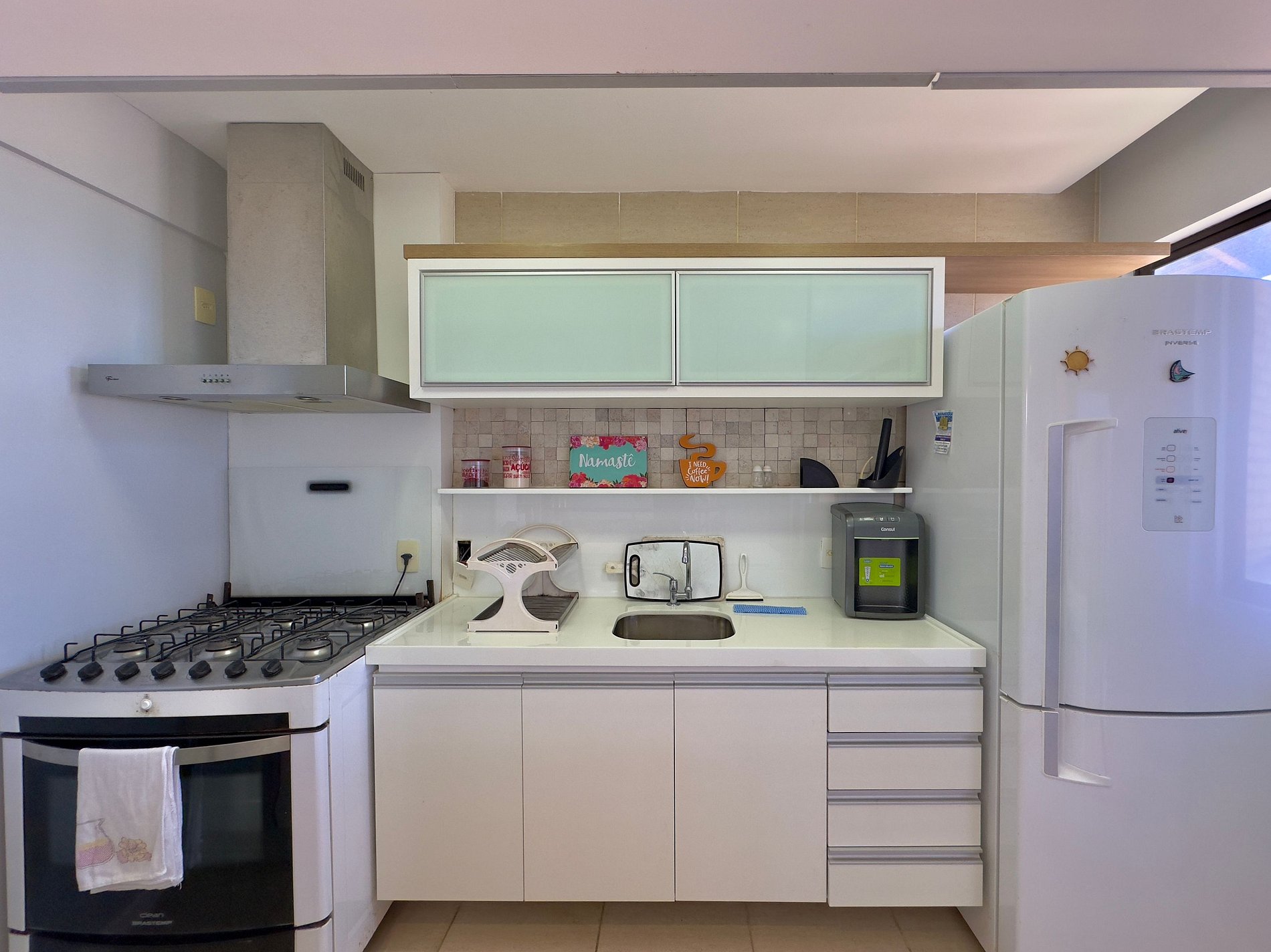 O espaço da área comum do apartamento é ótimo! A cozinha em estilo americano, com uma sala para assistir tv e uma área externa para botar aquele churrasco pra assar! Nada com que se preocupar, é só relaxar!